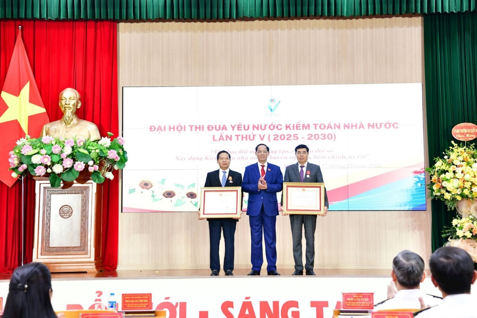 Đại hội cũng đã công bố Quyết định khen thưởng và tiến hành trao tặng các danh hiệu thi đua, khen thưởng của KTNN. Dịp này, 6 tập thể cấp vụ, 24 tập thể cấp phòng và 70 cá nhân có thành tích xuất sắc trong các phong trào thi đua giai đoạn 2020 - 2025 vinh dự nhận Bằng khen của Tổng Kiểm toán Nhà nước.