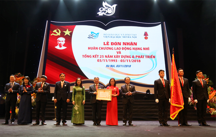 Ghi nhận những thành tích mà tập thể cán bộ, thầy và trò Viện Đại học Mở Hà Nội đã nỗ lực đạt được trong suốt 25 năm qua, tại buổi lễ, đồng chí Đào Việt Trung, Ủy viên Trung ương Đảng, Chủ nhiệm Văn phòng Chủ tịch nước đã trao tặng Huân chương Lao động hạng Nhì cho Viện Đại học Mở Hà Nội.