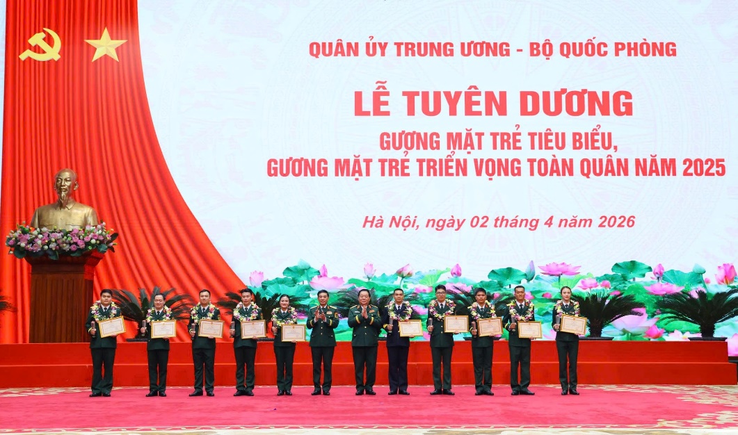 BTĐKT - Chiều 2/4, tại Hà Nội, Quân ủy Trung ương, Bộ Quốc phòng tổ chức Lễ tuyên dương Gương mặt trẻ tiêu biểu, Gương mặt trẻ triển vọng toàn quân năm 2025. Đại tướng Phan Văn Giang, Ủy viên Bộ Chính trị, Phó Bí thư Quân ủy Trung ương, Bộ trưởng Bộ Quốc phòng dự và phát biểu chỉ đạo. Dự buổi lễ có Đại tướng Nguyễn Trọng Nghĩa, Ủy viên Bộ Chính trị, Bí thư Trung ương Đảng, Ủy viên Thường vụ Quân ủy Trung ương, Chủ nhiệm Tổng cục Chính trị Quân đội nhân dân (QĐND) Việt Nam; Đại tướng Nguyễn Tân Cương, Ủy viên Trung ương Đảng, Ủy viên Thường vụ Quân ủy Trung ương, Tổng Tham mưu trưởng QĐND Việt Nam, Thứ trưởng Bộ Quốc phòng; đồng chí Bùi Quang Huy, Ủy viên Trung ương Đảng, Phó Chủ tịch Ủy ban Trung ương MTTQ Việt Nam, Bí thư Thứ nhất Trung ương Đoàn TNCS Hồ Chí Minh…; đại biểu các cơ quan, đơn vị trong toàn quân cùng 10 Gương mặt trẻ tiêu biểu và 80 Gương mặt trẻ triển vọng toàn quân năm 2025. Đại tướng Phan Văn Giang và Đại tướng Nguyễn Trọng Nghĩa trao Bằng khen và biểu trưng tặng 10 Gương mặt trẻ tiêu biểu Năm 2025, công tác bình chọn Gương mặt trẻ tiêu biểu, Gương mặt trẻ triển vọng toàn quân được triển khai chặt chẽ, dân chủ, khách quan; qua nhiều vòng xét duyệt, đã lựa chọn 10 Gương mặt trẻ tiêu biểu và 80 Gương mặt trẻ triển vọng thực sự xuất sắc trên các lĩnh vực: Huấn luyện, sẵn sàng chiến đấu, giáo dục và đào tạo; đấu tranh bảo vệ an ninh quốc gia, chống tội phạm xuyên biên giới; nghiên cứu khoa học, công nghệ; lao động sản xuất, kinh doanh; công tác đảng, công tác chính trị; thể dục, thể thao… Đây là những cá nhân có thành tích nổi bật, nhiều năm liền đạt các danh hiệu thi đua, tiêu biểu cho ý chí phấn đấu và khát vọng cống hiến của tuổi trẻ quân đội. Phát biểu chỉ đạo tại buổi lễ, Đại tướng Phan Văn Giang, Ủy viên Bộ Chính trị, Phó Bí thư Quân ủy Trung ương, Bộ trưởng Bộ Quốc phòng nhiệt liệt chúc mừng và biểu dương những thành tích, đóng góp nổi bật của 10 Gương mặt trẻ tiêu biểu và 80 Gương mặt trẻ triển vọng toàn quân năm 2025. Nhấn mạnh yêu cầu nhiệm vụ trong giai đoạn mới, Đại tướng Phan Văn Giang yêu cầu tuổi trẻ toàn quân quán triệt sâu sắc, triển khai hiệu quả Nghị quyết Đại hội XIV của Đảng, các nghị quyết chiến lược của Bộ Chính trị, Nghị quyết Đại hội đại biểu Đảng bộ Quân đội lần thứ XII; thực hiện nghiêm chỉ đạo của Tổng Bí thư Tô Lâm, Bí thư Quân ủy Trung ương về “2 kiên định, 2 đẩy mạnh, 2 ngăn ngừa”, phương châm “5 vững”; gắn với chủ đề năm 2026 của Quân ủy Trung ương “quyết tâm nghiên cứu, sản xuất vũ khí trang bị tiên tiến, hiện đại” và nội dung “2 xung kích, 2 sẵn sàng”, tạo chuyển biến rõ nét trong thực hiện nhiệm vụ. Đặc biệt, Đại tướng Phan Văn Giang yêu cầu cấp ủy, chỉ huy các cấp lãnh đạo, chỉ đạo tuổi trẻ toàn quân quán triệt và thực hiện tốt phương châm hành động với 16 “từ khóa”: “Khát vọng cống hiến - Tiên phong sáng tạo - Dũng cảm dấn thân - Nhân rộng điển hình”. Theo đó, mỗi cán bộ, đoàn viên thanh niên cần nuôi dưỡng lý tưởng, khát vọng vươn lên; không ngừng đổi mới tư duy, làm chủ khoa học, công nghệ, chuyển đổi số; sẵn sàng nhận và hoàn thành tốt nhiệm vụ khó, nhiệm vụ mới; đồng thời tích cực lan tỏa các mô hình hay, cách làm hiệu quả, góp phần xây dựng môi trường rèn luyện, cống hiến và trưởng thành vững chắc. Đại tướng Phan Văn Giang cũng yêu cầu cấp ủy, chỉ huy các cấp tiếp tục quan tâm lãnh đạo, tạo điều kiện thuận lợi để thanh niên phát huy năng lực; mạnh dạn giao nhiệm vụ khó, nhiệm vụ mới; kịp thời phát hiện, bồi dưỡng, trọng dụng nhân tài trẻ; coi đầu tư cho thanh niên là đầu tư cho tương lai lâu dài của quân đội và đất nước. Đại tướng Phan Văn Giang tin tưởng rằng các Gương mặt trẻ tiêu biểu, Gương mặt trẻ triển vọng sẽ tiếp tục nỗ lực phấn đấu, giữ vai trò nòng cốt, lan tỏa tinh thần cống hiến, xứng đáng là những “hạt giống đỏ”, góp phần xây dựng QĐND Việt Nam cách mạng, chính quy, tinh nhuệ, hiện đại, vững bước trong kỷ nguyên phát triển mới của dân tộc. Đại tướng Nguyễn Tân Cương và đồng chí Bùi Quang Huy trao Bằng khen tặng các Gương mặt trẻ triển vọng Tại lễ tuyên dương, Ban Tổ chức đã trao các quyết định, hình thức khen thưởng tặng 10 Gương mặt trẻ tiêu biểu và 80 Gương mặt trẻ triển vọng toàn quân năm 2025. Phương ThanhHà Nội khen thưởng đột xuất 7 cá nhân dũng cảm cứu người trong vụ cháy tại Lĩnh Nam