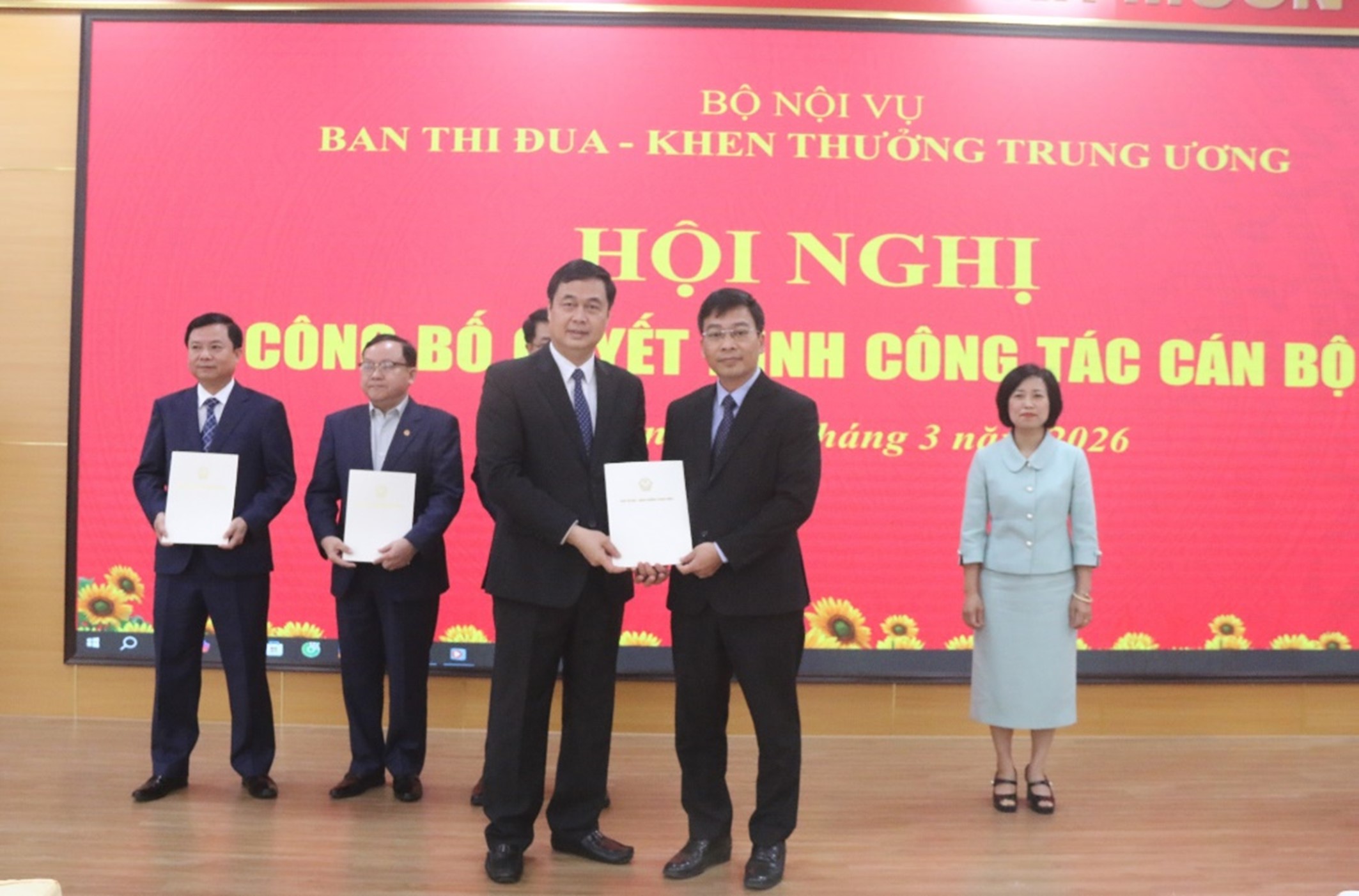 BTĐKT - Sáng 16/3, tại Hà Nội, Ban Thi đua - Khen thưởng Trung ương tổ chức Hội nghị công bố quyết định về công tác cán bộ. Đồng chí Phạm Huy Giang, Bí thư Đảng ủy, Trưởng ban Ban Thi đua - Khen thưởng Trung ương chủ trì hội nghị. Cùng dự hội nghị có các đồng chí Phó Trưởng ban; lãnh đạo các phòng, đơn vị thuộc Ban; cùng công chức, viên chức, người lao động của các phòng, đơn vị liên quan. Đồng chí Đỗ Thúy Phượng, Phó Trưởng ban Ban Thi đua - Khen thưởng Trung ương công bố các quyết định về công tác cán bộ Tại hội nghị, đồng chí Đỗ Thúy Phượng, Phó Trưởng ban Ban Thi đua - Khen thưởng Trung ương đã công bố các quyết định của Trưởng ban Ban Thi đua - Khen thưởng Trung ương về việc điều động, bổ nhiệm có thời hạn cán bộ giữ chức vụ lãnh đạo một số phòng, đơn vị. Theo đó, đồng chí Đỗ Trọng Hùng, Trưởng phòng Tổ chức cán bộ được điều động, bổ nhiệm giữ chức Trưởng phòng Thi đua - Khen thưởng các tỉnh, thành phố trực thuộc trung ương; đồng chí Đỗ Ngọc Toàn, Trưởng phòng Pháp chế và Giải quyết khiếu nại, tố cáo được điều động, bổ nhiệm giữ chức Trưởng phòng Tổ chức cán bộ; đồng chí Nguyễn Văn Thuật, Trưởng phòng Thi đua - Khen thưởng các tỉnh, thành phố trực thuộc trung ương được điều động, bổ nhiệm giữ chức Trưởng phòng Pháp chế và Giải quyết khiếu nại, tố cáo. Bên cạnh đó, đồng chí Nguyễn Hồng Tiến, Phó Trưởng phòng Nghiên cứu - Tổng hợp được bổ nhiệm giữ chức Giám đốc Trung tâm Thông tin - Truyền thông; đồng chí Đỗ Thị Thanh Hà, Phó Trưởng phòng Thi đua - Khen thưởng các tỉnh, thành phố trực thuộc trung ương được bổ nhiệm giữ chức Phó Trưởng phòng Nghiên cứu - Tổng hợp. Các quyết định có hiệu lực từ ngày 16/3/2026. Đồng chí Phạm Huy Giang trao quyết định điều động, bổ nhiệm đồng chí Nguyễn Hồng Tiến giữ chức vụ Giám đốc Trung tâm Thông tin – Truyền thông Lãnh đạo Ban tặng hoa chúc mừng các đồng chí vừa được điều đồng, bổ nhiệm Phát biểu tại hội nghị, đồng chí Phạm Huy Giang, Bí thư Đảng ủy, Trưởng ban Ban Thi đua - Khen thưởng Trung ương chúc mừng các đồng chí vừa được điều động, bổ nhiệm; đồng thời bày tỏ mong muốn trên cương vị công tác mới, các đồng chí tiếp tục nỗ lực, nhanh chóng tiếp cận công việc, phát huy vai trò, trách nhiệm của người đứng đầu, chủ động nghiên cứu, tham mưu, đề xuất với Đảng ủy và lãnh đạo Ban nhằm thực hiện tốt nhiệm vụ công tác thi đua, khen thưởng. Đồng chí Phạm Huy Giang, Bí thư Đảng ủy, Trưởng ban Ban Thi đua - Khen thưởng Trung ương phát biểu tại hội nghị Trưởng ban cũng đề nghị các đồng chí trong Đảng ủy, lãnh đạo các phòng, đơn vị phối hợp, hỗ trợ các cán bộ vừa được điều động, bổ nhiệm trong thời gian đầu nhận nhiệm vụ; đồng thời mong muốn đội ngũ công chức, viên chức, người làm việc tiếp tục phát huy tinh thần trách nhiệm, tích cực tham mưu, đề xuất, góp phần giúp các đồng chí lãnh đạo mới sớm nắm bắt công việc, nâng cao hiệu quả chỉ đạo, điều hành. Trưởng ban tin tưởng tập thể lãnh đạo, công chức, viên chức, người làm việc của Ban sẽ tiếp tục phát huy truyền thống đoàn kết, thống nhất, nỗ lực hoàn thành tốt các nhiệm vụ ngày càng nhiều và ngày càng nặng nề trong thời gian tới. Đồng chí Đỗ Trọng Hùng phát biểu nhận nhiệm vụ Thay mặt các đồng chí vừa được điều động, bổ nhiệm, đồng chí Đỗ Trọng Hùng trân trọng cảm ơn sự quan tâm, tin tưởng của lãnh đạo Ban và lãnh đạo các phòng, đơn vị; đồng thời khẳng định sẽ nỗ lực, trách nhiệm cao nhất để hoàn thành tốt nhiệm vụ được giao, mong tiếp tục nhận được sự phối hợp, hỗ trợ của các phòng, đơn vị trong quá trình công tác. Phương ThanhVề nguồn tại Bạch Đằng Giang – giáo dục truyền thống lịch sử cho đảng viên