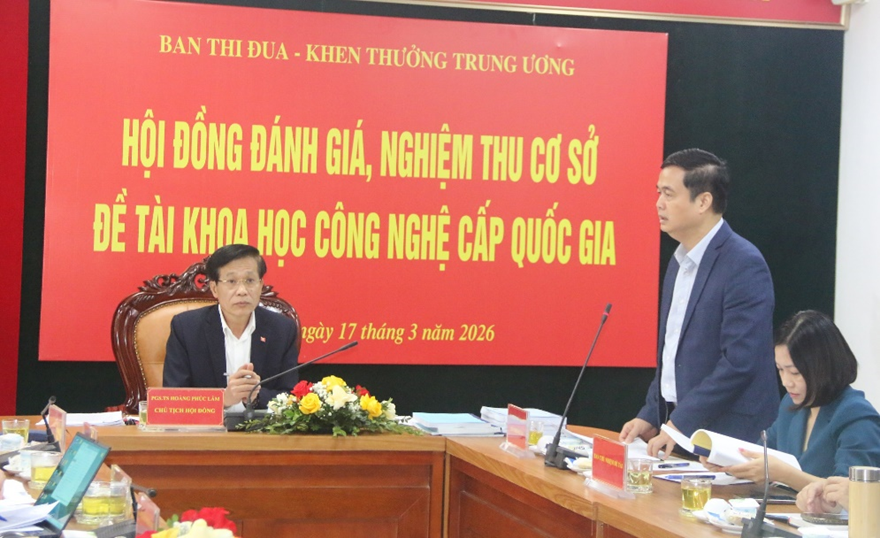 BTĐKT - Sáng 17/3, tại Hà Nội, Ban Thi đua - Khen thưởng Trung ương tổ chức Hội đồng đánh giá, nghiệm thu cơ sở đề tài khoa học công nghệ cấp quốc gia "Nghiên cứu vai trò điển hình tiên tiến trong phong trào thi đua yêu nước để đổi mới công tác thi đua, khen thưởng giai đoạn hiện nay". PGS. TS Hoàng Phúc Lâm, Phó Giám đốc Học viện Chính trị Quốc gia Hồ Chí Minh, Chủ tịch Hội đồng chủ trì hội nghị. Cùng dự hội nghị có TS. Vũ Thanh Mai, Phó Chủ tịch Hội đồng; các đồng chí là ủy viên Hội đồng đánh giá, nghiệm thu cơ sở đề tài. Về phía Ban Thi đua - Khen thưởng Trung ương, có TS. Phạm Huy Giang, Trưởng ban Ban Thi đua - Khen thưởng Trung ương, Chủ nhiệm đề tài; các đồng chí Phó Trưởng ban, lãnh đạo các phòng, đơn vị thuộc Ban Thi đua - Khen thưởng Trung ương; các thành viên Ban Chủ nhiệm đề tài. TS. Phạm Huy Giang, Trưởng ban Ban Thi đua - Khen thưởng Trung ương báo cáo tóm tắt các kết quả nghiên cứu của đề tài Tại hội nghị, TS. Phạm Huy Giang, Trưởng ban Ban Thi đua - Khen thưởng Trung ương, báo cáo tóm tắt các kết quả nghiên cứu của đề tài, đồng thời nhấn mạnh: Việc nghiên cứu đề tài khoa học cấp quốc gia “Nghiên cứu vai trò điển hình tiên tiến trong phong trào thi đua yêu nước để đổi mới công tác thi đua, khen thưởng giai đoạn hiện nay” là vấn đề mới và hết sức cần thiết, cấp bách để tiếp tục hoàn thiện cơ sở lý luận về thi đua, khen thưởng, để tiếp tục đổi mới công tác thi đua, khen thưởng, cổ vũ, động viên các tập thể, cá nhân ở các bộ, ngành, địa phương và các tầng lớp nhân dân học tập, thi đua cùng các điển hình tiên tiến, tạo thành phong trào quần chúng rộng lớn tạo động lực thức đẩy phát triển kinh tế, xã hội, đưa đất nước tiếp tục vươn lên mạnh mẽ, ngày càng phát triển, phấn đấu thực hiện thành công toàn diện các mục tiêu, nhiệm vụ mà Đại hội đại biểu toàn quốc lần thứ XIV của Đảng đã đề ra. Ngoài phần mở đầu và phần kết luận, đề tài gồm 3 phần chính: "Những vấn đề lý luận về vai trò điển hình tiên tiến trong công tác thi đua, khen thưởng"; "Thực trạng công tác phát hiện, bồi dưỡng, tổng kết, nhân rộng điển hình tiên tiến trong công tác thi đua, khen thưởng"; "Quan điểm, nhiệm vụ và các giải pháp phát huy vai trò điển hình tiên tiến trong đổi mới công tác thi đua, khen thưởng". Các Ủy viên Hội đồng nêu ý kiến phản biện cho đề tài Qua quá trình nghiên cứu lý luận và khảo sát thực tiễn sâu rộng, đề tài rút ra các kết luận mang tính định hướng: Thứ nhất, điển hình tiên tiến đóng vai trò là chủ thể nòng cốt trong việc chuyển đổi phương thức thi đua từ phong trào bề nổi sang hành động thực chất. Thứ hai, vai trò dẫn dắt của các điển hình tiên tiến là nhân tố quyết định sự thành công của các phong trào thi đua trọng tâm giai đoạn 2021 - 2025.Việc đổi mới công tác khen thưởng theo hướng ưu tiên người lao động trực tiếp (chiếm tỷ lệ khoảng 70%) đã tạo động lực thực chất, giúp điển hình tiên tiến trở thành hạt nhân của khối đại đoàn kết toàn dân tộc. Thứ ba, để nâng tầm công tác thi đua, khen thưởng giai đoạn 2026 - 2030, cần tập trung vào 9 định hướng đột phá gắn liền với cuộc cách mạng số và chuyển đổi xanh. Đề tài đề xuất giải pháp cốt lõi là chuyển dịch mạnh mẽ sang mô hình “tự động khen thưởng” dựa trên hệ thống dữ liệu số khách quan và minh bạch, nhằm giảm thiểu thủ tục hành chính, kiên quyết chống "bệnh" thành tích và tình trạng "chạy" khen thưởng. PGS. TS Hoàng Phúc Lâm, Chủ tịch Hội đồng phát biểu kết luận hội nghị Phát biểu kết luận tại hội nghị, PGS. TS Hoàng Phúc Lâm, Chủ tịch Hội đồng ghi nhận và đánh giá cao ý nghĩa lý luận, thực tiễn của đề tài; đồng thời khẳng định đề tài được triển khai công phu, bài bản, bám sát kế hoạch, với hệ thống sản phẩm phong phú, có giá trị tham khảo cao. Chủ tịch Hội đồng đề nghị Ban Chủ nhiệm đề tài tiếp tục hoàn thiện một số nội dung, trong đó chú trọng làm rõ hơn phần mở đầu, đặc biệt là tính cấp thiết trong bối cảnh hiện nay; bổ sung tổng quan các công trình nghiên cứu liên quan và làm nổi bật tính mới của đề tài; cần tiếp tục hoàn thiện hệ thống khái niệm, đồng thời nghiên cứu, bổ sung kinh nghiệm quốc tế để tăng tính so sánh, đối chiếu. Bên cạnh đó, cần rà soát, bổ sung các phụ lục cần thiết và xây dựng báo cáo kiến nghị trình Bộ Chính trị, Ban Bí thư, Thủ tướng Chính phủ nhằm nâng cao giá trị ứng dụng của đề tài… Thay mặt Ban Chủ nhiệm đề tài, TS. Phạm Huy Giang trân trọng cảm ơn Chủ tịch, Phó Chủ tịch và các thành viên Hội đồng đã dành thời gian tham dự, đóng góp nhiều ý kiến tâm huyết, sâu sắc và có giá trị định hướng. Ban Chủ nhiệm đề tài cam kết nghiêm túc tiếp thu, hoàn thiện tối đa nội dung theo góp ý của H
