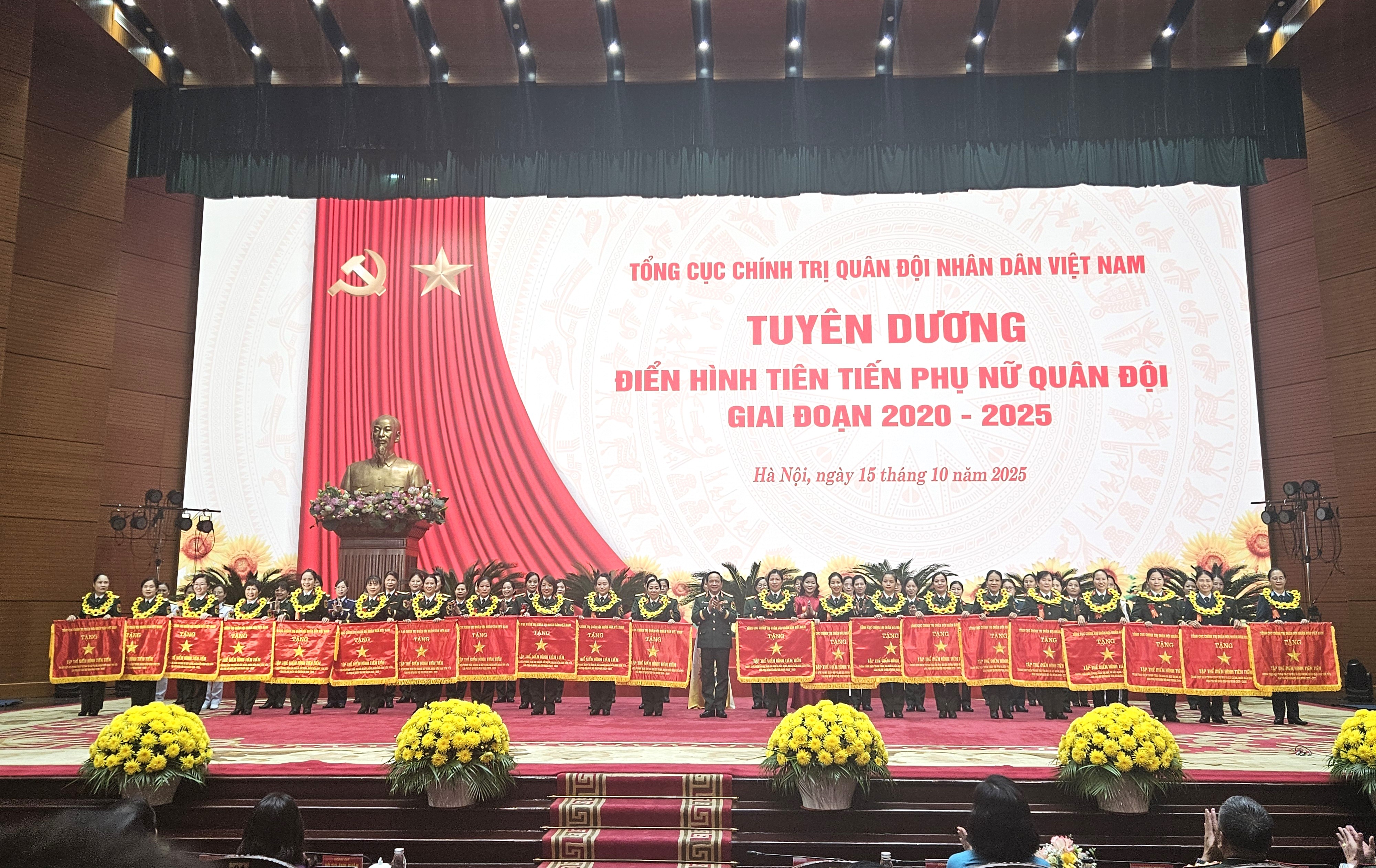 BTĐKT - Chiều 15/10, tại Hà Nội, Tổng cục Chính trị Quân đội nhân dân (QĐND) Việt Nam tổ chức tuyên dương điển hình tiên tiến phụ nữ quân đội giai đoạn 2020 - 2025. Dự Lễ tuyên dương có các đồng chí: Đại tướng Trịnh Văn Quyết, Bí thư Trung ương Đảng, Ủy viên Thường vụ Quân ủy Trung ương, Chủ nhiệm Tổng cục Chính trị QĐND Việt Nam; Phó Chủ tịch nước Võ Thị Ánh Xuân, Ủy viên Trung ương Đảng; Thượng tướng Lê Huy Vịnh, Ủy viên Trung ương Đảng, Ủy viên Quân ủy Trung ương, Thứ trưởng Bộ Quốc phòng, Trưởng ban Vì sự tiến bộ của phụ nữ Bộ Quốc phòng; Phó Chủ tịch Hội Liên hiệp Phụ nữ Việt Nam Nguyễn Thị Minh Hương; Thủ trưởng Bộ Tổng Tham mưu, Tổng cục Chính trị QĐND Việt Nam; đại diện Mẹ Việt Nam anh hùng, cán bộ chuyên trách phụ nữ các đơn vị trực thuộc Quân ủy Trung ương, Bộ Quốc phòng. Đại tướng Trịnh Văn Quyết, Bí thư Trung ương Đảng, Ủy viên Thường vụ Quân ủy Trung ương, Chủ nhiệm Tổng cục Chính trị QĐND Việt Nam trao tặng Cờ thi đua của Tổng cục Chính trị cho các tập thể tiêu biểu 5 năm qua, phong trào thi đua và công tác xây dựng, nhân điển hình tiên tiến trong phụ nữ quân đội đã phát triển trên cả diện rộng và chiều sâu, được duy trì thường xuyên, liên tục, tạo sức lan tỏa sâu rộng. Phong trào luôn gắn kết chặt chẽ với các phong trào thi đua, cuộc vận động và phong trào thi đua Quyết thắng của toàn quân, được tổ chức sôi nổi, rộng khắp trong toàn quân, trên mọi lĩnh vực công tác, nhất là ở những nơi gian khổ, khó khăn... Đặc biệt, phong trào thi đua “Phụ nữ quân đội trí tuệ - bản lĩnh, hoàn thành tốt nhiệm vụ, xây dựng gia đình hạnh phúc, xứng danh Bộ đội Cụ Hồ thời kỳ mới” được cụ thể hóa và gắn kết chặt chẽ với tiêu chí và động lực thi đua của các phong trào, các cuộc vận động lớn do Đảng, Nhà nước, quân đội, Hội Liên hiệp Phụ nữ Việt Nam và địa phương phát động, tạo thành những cao trào hành động cách mạng, liên tục cổ vũ các tập thể, cá nhân sáng tạo trong thực hiện nhiệm vụ, xây dựng được nhiều mô hình thi đua hiệu quả thực hiện vượt mức các chỉ tiêu, mục tiêu thi đua, hoàn thành xuất sắc nhiệm vụ được giao. Thông qua phong trào thi đua, nhiều mô hình, phần việc mang dấu ấn phụ nữ được cụ thể hóa trong lĩnh vực giảng dạy, nghiên cứu khoa học, phục vụ nhiệm vụ huấn luyện, sẵn sàng chiến đấu: Mô hình “Giáo án hay, bài giảng tốt”, “Giờ giảng kiểu mẫu”, “Phụ nữ tích cực thực hiện nhiệm vụ khoa học công nghệ”, “Phụ nữ sáng tạo”, “Giờ giảng 8/3”; “Ca trực kiểu mẫu, kíp trực an toàn”, “Phiên ban, kíp ban kiểu mẫu”, “Tổ phụ nữ mẫu mực về điều lệnh chính quy”… Qua các phong trào thi đua, đến nay, đã có gần 90% cán bộ, hội viên phụ nữ quân đội đạt 3 tiêu chuẩn của phong trào thi đua “Phụ nữ Quân đội trí tuệ - bản lĩnh, hoàn thành tốt nhiệm vụ, xây dựng gia đình hạnh phúc, xứng danh Bộ đội Cụ Hồ thời kỳ mới” và đủ tiêu chuẩn đề nghị thủ trưởng các cấp khen thưởng danh hiệu “Cán bộ Hội giỏi”, “Hội viên phụ nữ tiên tiến”, danh hiệu “Cán bộ/hội viên phụ nữ xuất sắc” và “Cán bộ/hội viên phụ nữ xuất sắc tiêu biểu”. Hơn 98% gia đình hội viên phụ nữ đạt các tiêu chí Cuộc vận động Xây dựng gia đình “5 không, 3 sạch”, “5 có, 3 sạch” và đạt danh hiệu “Gia đình Văn hóa”. Phó Chủ tịch nước Võ Thị Ánh Xuân trao quà tặng cán bộ, hội viên phụ nữ quân đội điển hình tiên tiến Phát biểu tại buổi lễ, Đại tướng Trịnh Văn Quyết, Bí thư Trung ương Đảng, Ủy viên Thường vụ Quân ủy Trung ương, Chủ nhiệm Tổng cục Chính trị QĐND Việt Nam nhấn mạnh: Kế thừa, phát huy truyền thống vẻ vang của phụ nữ Việt Nam, trong hơn 80 năm qua, phụ nữ quân đội luôn là một phần không thể tách rời của lực lượng vũ trang cách mạng - những chiến sĩ kiên trung, những người mẹ, người vợ, người đồng đội thủy chung, nhân hậu, góp phần tô thắm truyền thống và phẩm chất cao quý “Bộ đội Cụ Hồ”. Hiện nay, với hơn 20% quân số toàn quân, phụ nữ Quân đội đã và đang đảm nhiệm vai trò quan trọng trên hầu khắp các lĩnh vực công tác, kể cả những lĩnh vực có tính chất đặc thù, yêu cầu cao về trình độ chuyên môn, kỹ năng nghề nghiệp, thể lực và bản lĩnh chính trị. Trong các lĩnh vực mới, khó, đòi hỏi trình độ cao, phụ nữ quân đội tiếp tục khẳng định trí tuệ, bản lĩnh, năng lực sáng tạo và khát vọng cống hiến. Để phát huy vai trò của phụ nữ quân đội trong thời gian tới, Đại tướng Trịnh Văn Quyết đề nghị toàn quân tập trung thực hiện tốt một số nội dung trọng tâm, trong đó có việc tập trung lãnh đạo, chỉ đạo thực hiện nghiêm túc, đồng bộ, bảo đảm thống nhất giữa mục tiêu bình đẳng giới với yêu cầu nhiệm vụ quân sự, quốc phòng; tạo m
