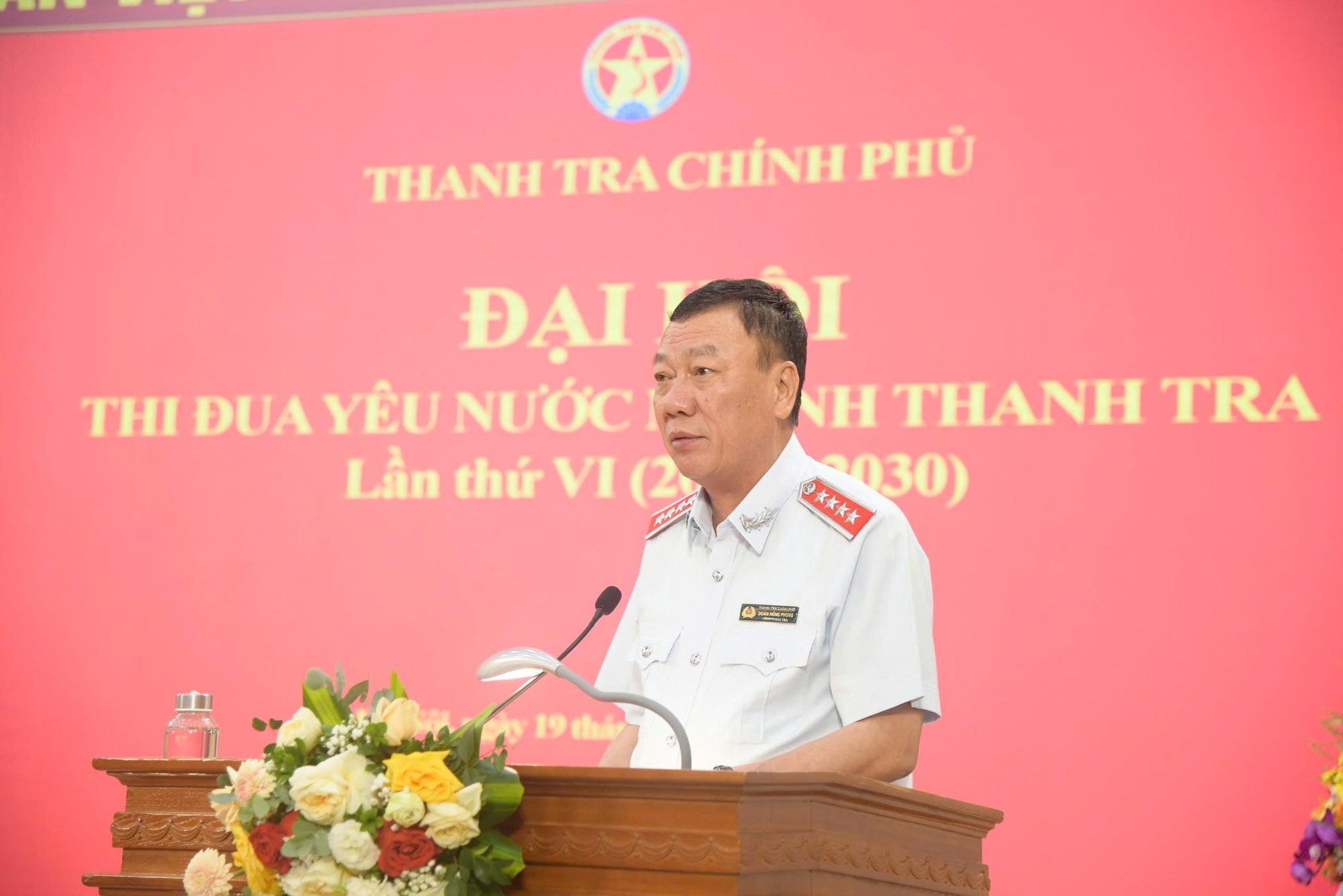 Đại hội thi đua yêu nước lần thứ VI là dấu mốc quan trọng đánh dấu bước phát triển mới để tiếp tục nỗ lực, phấn đấu xây dựng ngành thanh tra “liêm chính, kỷ cương, đổi mới, hiệu quả”. Tổng Thanh tra Chính phủ Đoàn Hồng Phong phát biểu tại Đại hội - Ảnh: VGP/Toàn Thắng Ngày 19/9, Thanh tra Chính phủ tổ chức Đại hội Thi đua yêu nước ngành Thanh tra lần thứ VI nhằm tổng kết, đánh giá kết quả phong trào thi đua yêu nước và công tác khen thưởng giai đoạn 2020-2025. Đại hội cũng nhằm biểu dương, tôn vinh những tập thể, cá nhân điển hình tiên tiến, có thành tích xuất sắc trong sự nghiệp xây dựng và phát triển ngành Thanh tra. Phong trào thi đua lan tỏa sâu rộng, đi vào thực chất và hiệu quả Phát biểu khai mạc, Tổng Thanh tra Chính phủ Đoàn Hồng Phong nhấn mạnh, với ngành Thanh tra, các phong trào thi đua yêu nước trong 5 năm qua đã phát huy sức mạnh tổng hợp, nỗ lực vượt qua mọi khó khăn, thách thức hoàn thành xuất sắc mọi nhiệm vụ được Đảng, Nhà nước và Nhân dân giao phó. "Phong trào thi đua yêu nước không ngừng lan tỏa sâu rộng, ngày càng đi vào thực chất và hiệu quả", Tổng Thanh tra Chính phủ khẳng định. Thông qua các phong trào thi đua yêu nước gắn với thực hiện nhiệm vụ chính trị của ngành đã xuất hiện nhiều tập thể, cá nhân điển hình tiên tiến, tiêu biểu với các mô hình hay, cách làm sáng tạo, hiệu quả trên các lĩnh vực công tác thanh tra, tiếp công dân, giải quyết khiếu nại, tố cáo và phòng, chống tham nhũng, lãng phí, tiêu cực. Điều này góp phần giữ vững kỷ cương, kỷ luật hành chính, xây dựng nền hành chính trong sạch, liêm chính, hiệu năng, hiệu lực, hiệu quả. Trong giai đoạn 2021-2025, Thanh tra Chính phủ có 58 tập thể, cá nhân được Đảng và Nhà nước trao tặng 1 huân chương Độc lập hạng Ba; 22 huân chương Lao động các hạng; 5 cờ thi đua của Chính phủ; 29 bằng khen của Thủ tướng Chính phủ và 1 chiến sĩ thi đua toàn quốc. Tổng Thanh tra Chính phủ đã tặng 1.959 danh hiệu thi đua, hình thức khen thưởng cho các tập thể và cá nhân trong toàn ngành Thanh tra. Các đại biểu tham dự Đại hội Thi đua yêu nước ngành Thanh tra lần thứ VI - Ảnh: VGP/Toàn Thắng Nhiều dấu ấn nổi bật trong phong trào thi đua Báo cáo kết quả thực hiện phong trào thi đua yêu nước giai đoạn 2021-2025 của Thanh tra Chính phủ nhấn mạnh, các phong trào thi đua đã góp phần động viên toàn ngành Thanh tra hăng hái thi đua hoàn thành xuất sắc nhiệm vụ được giao, thể hiện trên từng lĩnh vực. Ban Thường vụ Đảng uỷ Thanh tra Chính phủ đã ban hành nhiều Nghị quyết chuyên đề để lãnh đạo, chỉ đạo khắc phục tồn tại, hạn chế, nâng cao chất lượng, hiệu quả công tác thanh tra. Kiểm soát quyền lực, phòng, chống tham nhũng, tiêu cực trong hoạt động thanh tra. Việc công khai kết luận thanh tra được thực hiện theo đúng quy định, đi vào nền nếp. Công tác giám sát, thẩm định, xử lý sau thanh tra ngày càng phát huy hiệu quả; đã khắc phục triệt để được tình trạng chồng chéo trong hoạt động giữa các cơ quan thanh tra. Toàn ngành đã triển khai trên 32.484 cuộc thanh tra hành chính và 752.164 cuộc thanh tra, kiểm tra chuyên ngành. Qua thanh tra đã phát hiện vi phạm về kinh tế 703.477 tỷ đồng (tăng 62,3% so với nhiệm kỳ trước), 19.618 ha đất; kiến nghị thu hồi 424.881 tỷ đồng (tăng 86,6% so với nhiệm kỳ trước), 2.209 ha đất; kiến nghị xem xét, xử lý hành chính 16.426 tập thể và 34.420 cá nhân; chuyển cơ quan điều tra 1.762 vụ việc (tăng 258,8% so với nhiệm kỳ trước), 1.266 đối tượng (tăng 80,6% so với nhiệm kỳ trước). Đặc biệt, thực hiện Kết luận của Tổng Bí thư Tô Lâm về giải quyết các vụ việc khiếu nại, tố cáo phức tạp, kéo dài, vượt cấp lên Trung ương trên địa bàn TP. Hà Nội, Thanh tra Chính phủ đã thực hiện "chiến dịch 90 ngày đêm" tập trung huy động lực lượng nhiều đơn vị tham gia; cùng với sự vào cuộc của cả hệ thống chính trị, nhiệm vụ giải quyết 226 vụ việc khiếu nại, tố cáo phức tạp, kéo dài, vượt cấp lên Trung ương trên địa bàn thành phố Hà Nội cơ bản hoàn thành. Thừa ủy quyền của Chủ tịch nước, Tổng Thanh tra Chính phủ Đoàn Hồng Phong trao Huân chương Lao động cho các cá nhân có thành tích đặc biệt xuất sắc trong phong trào thi đua giai đoạn 2021 - 2025 - Ảnh: VGP/Toàn Thắng Trong công tác phòng, chống tham nhũng, lãng phí, tiêu cực, 5 năm qua, ngành thanh tra đã phát hiện sai phạm về kinh tế tăng 62,3%; kiến nghị xử lý thu hồi về ngân sách nhà nước tăng 86,6%; chuyển cơ quan điều tra tăng 258,8% số vụ việc và tăng 80,6% số đối tượng so với nhiệm kỳ trước. Phó Tổng Thanh tra Chính phủ Lê Sỹ Bảy trao Bằng khen của Thủ tướng Chính phủ cho các cá nhân có thành tích xuất sắc trong phong trào thi đua - Ảnh: VGP/Toàn Thắng Đáng chú ý, khi Ban Chỉ đạo Trung ương chuyển trọng tâm sang phòng, chống lãng phí, đặt nhiệm vụ phòng, chống lãng phí ngang v