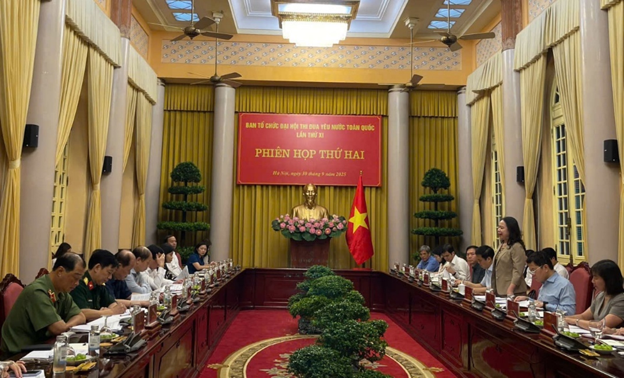 BTĐKT – Chiều ngày 30/9, tại Phủ Chủ tịch đã diễn ra Phiên họp thứ hai của Ban Tổ chức Đại hội Thi đua yêu nước toàn quốc lần thứ XI. Đồng chí Võ Thị Ánh Xuân, Ủy viên Trung ương Đảng, Phó Chủ tịch nước, Phó Chủ tịch Thứ nhất Hội đồng Thi đua - Khen thưởng (TĐKT) chủ trì phiên họp. Toàn cảnh phiên họp Báo cáo tại phiên họp, đồng chí Phạm Huy Giang, Trưởng ban Ban TĐKT Trung ương, Ủy viên Thường trực Hội đồng TĐKT cho biết: Sau khi các bộ, ban, ngành, địa phương hoàn thành việc sắp xếp tổ chức bộ máy và thực hiện chính quyền địa phương 2 cấp, để việc tổ chức Đại hội thi đua các cấp được triển khai kịp thời, đồng bộ, hiệu quả, Bộ Nội vụ đã ban hành hướng dẫn bổ sung một số nội dung về việc tổ chức Đại hội Thi đua yêu nước các cấp tại các bộ, ban, ngành trung ương và các tỉnh, thành phố trực thuộc trung ương. Đến hết tháng 8/2025, các bộ, ban, ngành, địa phương đã cơ bản hoàn thành Đại hội (hoặc hội nghị) cấp cơ sở và trên cơ sở, với các hình thức tổ chức phong phú, đa dạng, tạo không khí thi đua sôi nổi chào mừng Đại hội Đảng các cấp và các ngày lễ lớn trong năm 2025. Đối với Đại hội thi đua yêu nước cấp bộ, cấp tỉnh, tính đến ngày 30/9/2025, đã có 19/42 bộ, ngành tổ chức Đại hội thi đua, dự kiến khối bộ ngành sẽ hoàn thành việc tổ chức Đại hội trong tháng 9 và tháng 10/2025. Có 17/34 tỉnh, thành phố đã tổ chức Đại hội thi đua; có 3 tỉnh đã có lịch tổ chức Đại hội vào đầu tháng 10 và 14 tỉnh dự kiến tổ chức Đại hội trong tháng 10. Đồng chí Phạm Huy Giang, Trưởng ban Ban TĐKT Trung ương, Ủy viên Thường trực Hội đồng TĐKT Trung ương báo cáo tại phiên họp Nhìn chung, Đại hội thi đua yêu nước các cấp được tổ chức bảo đảm nội dung, tiến độ, mục đích, yêu cầu đề ra. Bên cạnh việc tổng kết, đánh giá phong trào thi đua yêu nước và công tác khen thưởng trong 5 năm qua, đề ra phương hướng, nhiệm vụ trong giai đoạn tới, Đại hội đã lựa chọn, biểu dương, tôn vinh những điển hình, nhân tố mới, những tập thể, cá nhân đạt thành tích xuất sắc trên các lĩnh vực kinh tế, văn hóa, xã hội, an ninh, quốc phòng... Công tác tuyên truyền được quan tâm, đặc biệt trên các phương tiện thông tin, truyền thông, tạo khí thế thi đua sôi nổi trong các tầng lớp nhân dân và động viên, nêu gương các điển hình tiên tiến. Công tác giới thiệu đại biểu đi dự Đại hội thi đua yêu nước cấp trên được thực hiện theo đúng quy định. Các đồng chí lãnh đạo Đảng, Nhà nước và thành viên Hội đồng TĐKT Trung ương đã dành thời gian dự và chỉ đạo, góp phần vào thành công của Đại hội. Bộ Nội vụ (Ban TĐKT Trung ương) đã tập trung đôn đốc, hướng dẫn và tham gia ý kiến về nội dung, chương trình Đại hội của các bộ, ngành, cơ quan, đơn vị. Về công tác chuẩn bị tổ chức Đại hội Thi đua toàn quốc lần thứ XI, sau phiên họp thứ nhất của Ban Tổ chức Đại hội, Cơ quan Thường trực đã hoàn thiện các văn bản và tham mưu Trưởng ban Ban Tổ chức Đại hội ban hành các văn bản: Quyết định số 02/QĐ-BTCĐH ngày 26/6/2025 về việc ban hành Quy chế làm việc của Ban Tổ chức Đại hội Thi đua yêu nước toàn quốc lần thứ XI; Kế hoạch số 03/KH-BTCĐH ngày 26/6/2025 về kế hoạch hoạt động của Ban Tổ chức Đại hội Thi đua yêu nước toàn quốc lần thứ XI; các Quyết định số 04, 05, 06, 07/QĐ-BTCĐH 26/6/2025 thành lập Tiểu ban Nội dung, Tiểu ban Tuyên truyền, Tiểu ban Hậu cần và Tiểu ban An ninh; Kế hoạch số 09/KH-BTCĐH ngày 04/8/2025 phân bổ đại biểu dự Đại hội Thi đua yêu nước toàn quốc lần thứ XI. Các Tiểu ban của Đại hội đã xây dựng kế hoạch, phân công và triển khai nhiệm vụ được giao, đảm bảo tiến độ, yêu cầu đề ra. Tại phiên họp, đại diện các tiểu ban: Nội dung, An ninh, Tuyên truyền, Hậu cần đã báo cáo một số nhiệm vụ trọng tâm đã hoàn thành, đồng thời tiếp tục tập trung triển khai các nhiệm vụ tiếp theo. Bên cạnh đó, các đại biểu cũng đã thảo luận, cho ý kiến về các nội dung: Báo cáo tổng kết phong trào thi đua yêu nước và công tác khen thưởng 5 năm (2021 - 2025), phương hướng, nhiệm vụ giai đoạn 2025 - 2030; kịch bản Đại hội Thi đua yêu nước toàn quốc lần thứ XI; kịch bản Chương trình nghệ thuật “Hoa đất nước” khai mạc Đại hội và kịch bản Chương trình nghệ thuật “Khát vọng Việt Nam”; kịch bản phim tài liệu “Phong trào Thi đua yêu nước thời đại Hồ Chí Minh” và phim tài liệu “Thi đua yêu nước - Bứt phá vững bước vào kỷ nguyên mới”; Đề án mỹ thuật trang trí Đại hội. Phó Chủ tịch nước Võ Thị Ánh Xuân phát biểu kết luận phiên họp Kết luận phiên họp, Phó Chủ tịch nước Võ Thị Ánh Xuân ghi nhận kết quả việc tổ chức Đại hội thi đua yêu nước của một số bộ, ngành, địa phương đã tổ chức rất nghiêm túc, trách nhiệm và trang tr