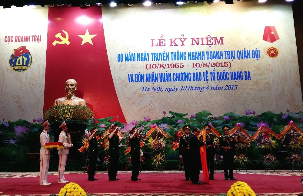 TĐKT- Sáng 10/8, tại Hội trường Bộ Quốc phòng, Hà Nội, ngành Doanh trại quân đội long trọng tổ chức lễ kỷ niệm 60 năm ngày truyền thống của ngành (10/8/1955-10/8/2015) và đón nhận Huân chương Bảo vệ Tổ quốc hạng Ba của Đảng, Nhà nước trao tặng. Phó Thủ tướng Nguyễn Xuân Phúc dự và phát biểu tại buổi lễ.