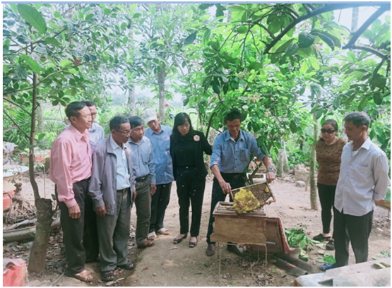 Nhờ lợi thế đất vườn rộng là khu vực có nguồn hoa dồi dào, năm 2013, ông Hà đã học hỏi kinh nghiệm và mạnh dạn chuyển sang nghề nuôi ong lấy mật.
