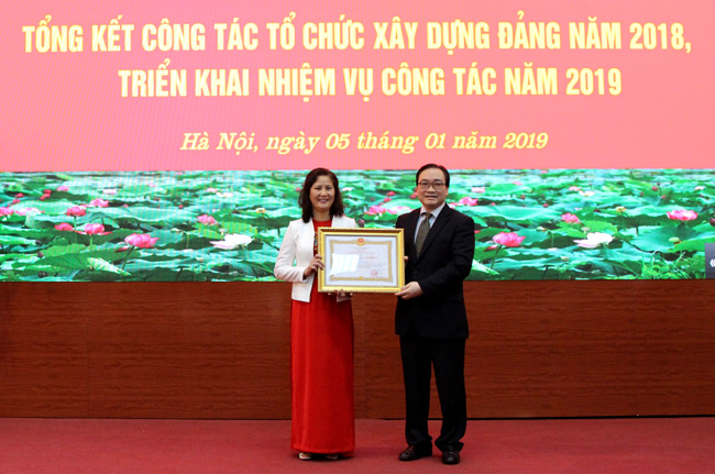 Ghi nhận những nỗ lực của các tập thể, cá nhân có nhiều thành tích trong công tác năm 2018, tại Hội nghị, Ban Tổ chức đã trao Huân chương Lao động hạng Ba cho nguyên Phó Trưởng ban Tổ chức Thành ủy Hà Nội Nguyễn Thị Minh Hạnh; kỷ niệm chương “Vì sự nghiệp công tác tổ chức xây dựng Đảng” cho 31 cán bộ ngành tổ chức xây dựng Đảng; Bằng khen của Ban Thường vụ Thành ủy Hà Nội cho 20 tập thể, cá nhân có thành tích xuất sắc tiêu biểu trong công tác tổ chức xây dựng Đảng; UBND TP Hà Nội tặng cờ đơn vị xuất sắc phong trào thi đua cho 6 tập thể, tặng bằng khen lao động xuất sắc cho 8 tập thể, cá nhân.