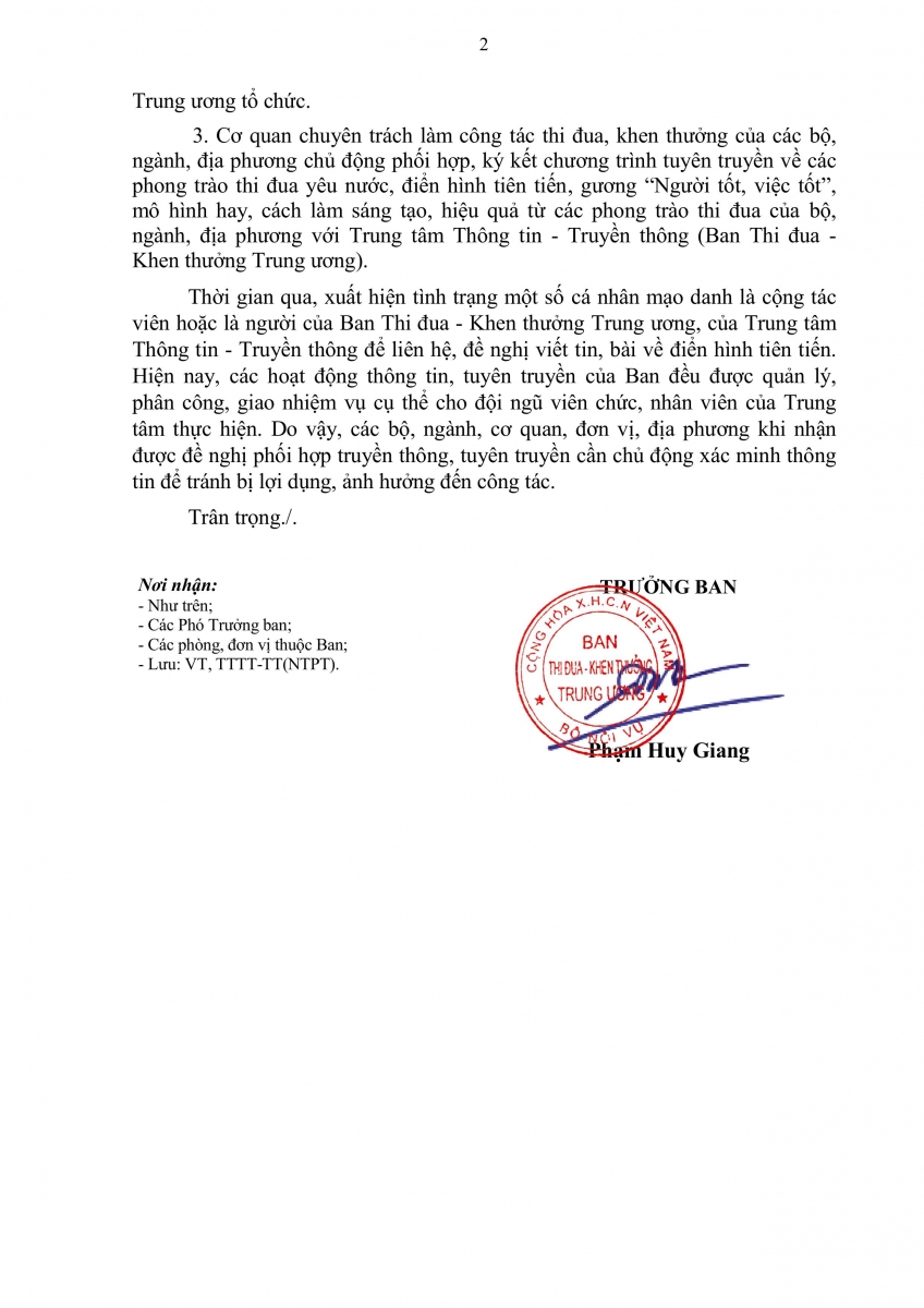 Công văn số 923/BTĐKT-TTTTTT ngày 10/4/2026 của Ban Thi đua - Khen thưởng Trung ương về việc tuyên truyền, giới thiệu gương điển hình tiên tiến