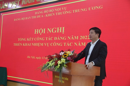 Thay mặt Đảng ủy Ban Thi đua – Khen thưởng Trung ương, đồng chí Phạm Huy Giang, Bí thư Đảng ủy, Trưởng ban Ban Thi đua – Khen thưởng Trung ương tiếp thu, lĩnh hội những gợi mở của đồng chí Phó Bí thư Thường trực Đảng ủy Bộ Nội vụ. Đồng thời nhấn mạnh: Năm 2022 là một năm nhiều biến động, khó khăn, thuận lợi đan xen, nhưng với tinh thần nỗ lực, cố gắng và đoàn kết, đảng viên toàn Đảng bộ Ban đã hoàn thành tốt các nhiệm vụ được giao.