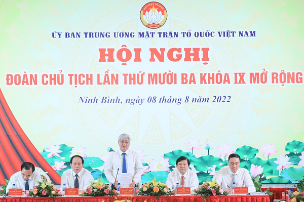 Hội nghị Đoàn Chủ tịch UBTƯ MTTQ Việt Nam lần thứ mười ba, Khóa IX mở rộng, nhiệm kỳ 2019-2024 khai mạc sáng 8/8, tại Ninh Bình