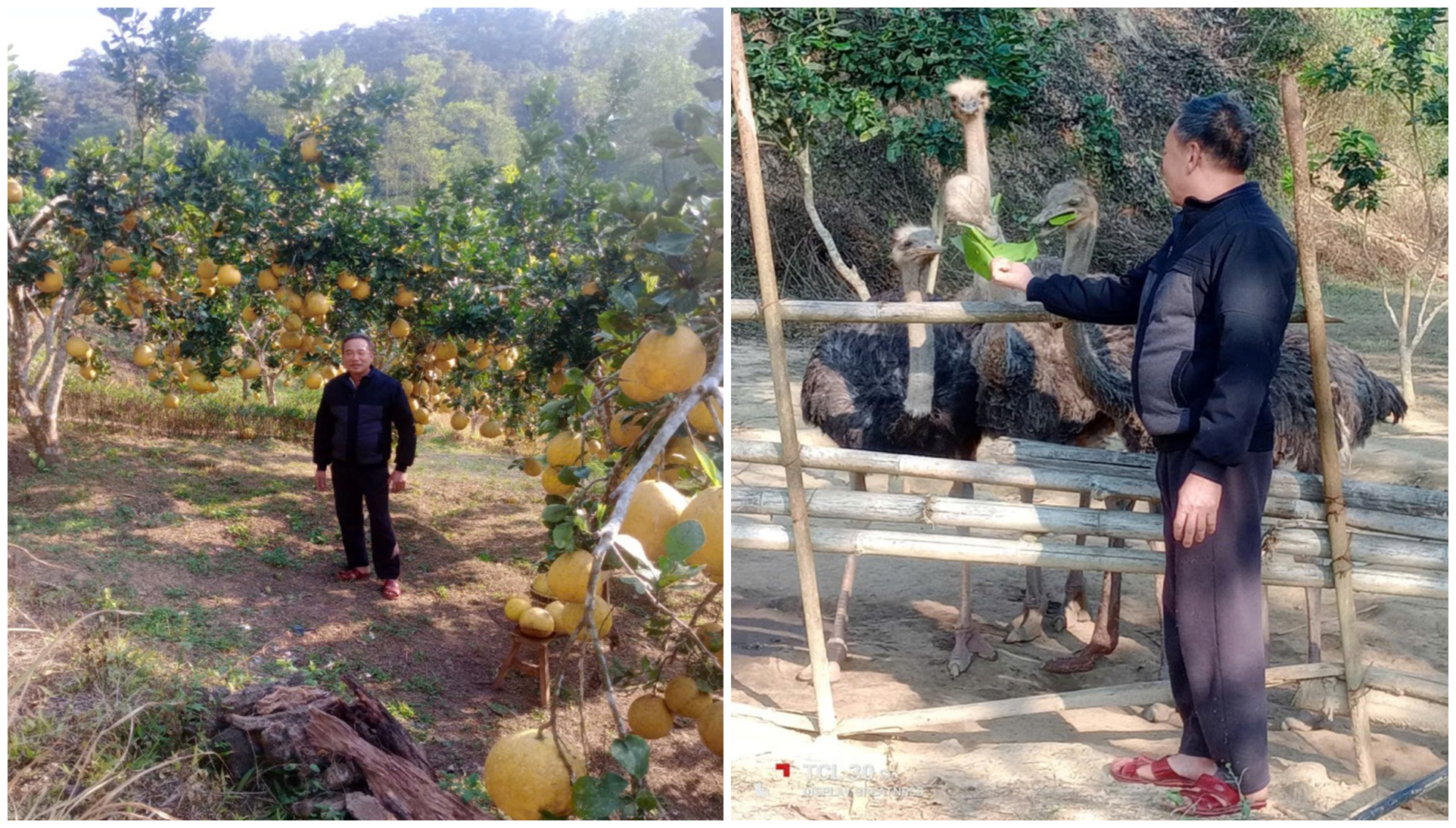 Anh Nguyễn Văn Ơn tại vườn bưởi và khu nuôi đà điểu trong trang trại